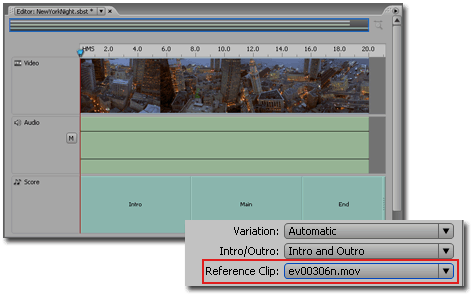 В закладке AutoCompose Score в пункте Reference Clip выберите импортированное видео.