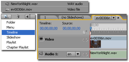 По окончании процесса кодирования автоматически запустится программа Adobe Encore CS3, и откроется новый проект, содержащий таймлинию с расположенным на ней только что просчитанным материалом.