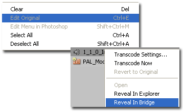 Чтобы подогнать длительность звука под длительность видео, необходимо открыть данный аудиофайл в программе Adobe Soundbooth CS3. Если команда Edit Original недоступна, то нажмите правую кнопку мыши на звуковом файле и выберите пункт Reveal In Bridge.