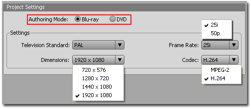 Он вызывает огромное число шаблонов для Blu-ray авторинга: