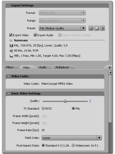 Загрузится окно Export Settings, где вы можете выбрать существующий или создать новый шаблон кодировщика Adobe Media Encoder.