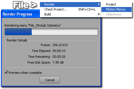 Для окончательного просчета меню выполните команду File > Render > Motion Menus.