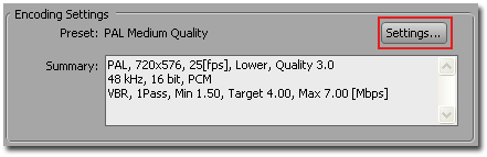 Если вас не устраивает выбранный автоматически шаблон, нажмите кнопку Settings в разделе Encoding Settings.
