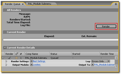 Для просчета анимированного меню переключитесь на закладку Render Queue и нажмите кнопку Render.