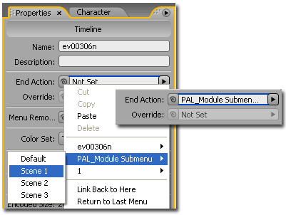 А в свойствах таймлинии выставьте параметр End Action: равным PAL_Module Submenu > Scene 1.