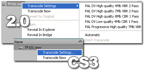 Изменения коснулись и выбора настроек транскодирования. Так, при нажатии правой кнопки мыши на файле в списке палитры Project теперь появился доступ к изменению настроек шаблона.