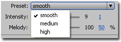 В пункте Preset есть возможность выбрать три варианта мелодии: smooth, medium и high.