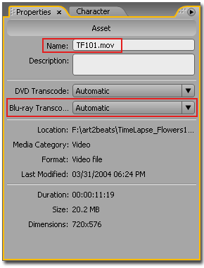 Дизайн палитры Properties немного изменился, появилось отдельное поле для имени файла и добавлен новый пункт Blu-ray Transcode.