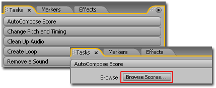 В программе Adobe Soundbooth CS3 откройте закладку Tasks и нажмите кнопку AutoCompose Score.