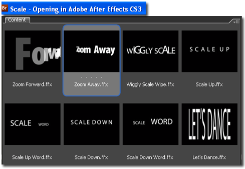Теперь нужно выбрать стиль появления титров, для этого воспользуемся встроенными в программу заготовками. Для просмотра Animation Presets выполните команду Animation > Browse Presets. Запустится программа Adobe Bridge CS3, где вы сможете просмотреть анимированные заготовки.