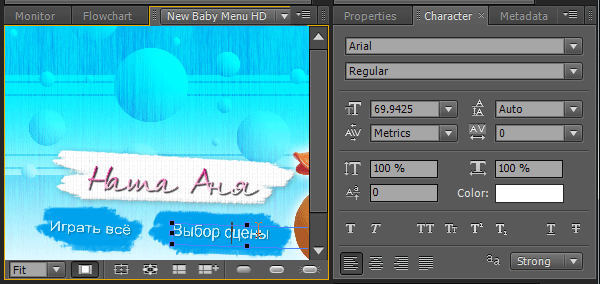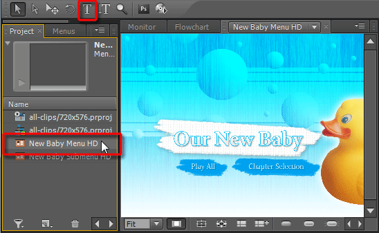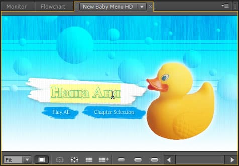 Поработаем над заглавным меню. Двойной щелчок по строке New Baby Menu HD откроет данное меню для редактирования.