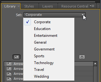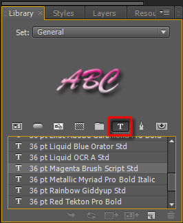 Если требуется изменить стиль шрифта, то к вашим услугам небольшая библиотека текстовых стилей, для их отображения во вкладке Library нужно щелкнуть кнопку "Toggle display of text items":