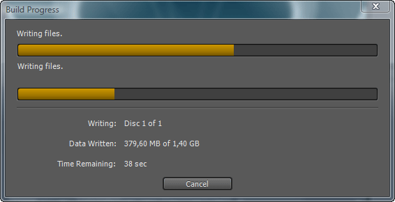 Время просчета целиком и полностью зависит от того, какой видеоматериал импортирован в программу. Если ваше видео требует перекодирования, то, соответственно, время работы увеличится в десятки и более раз. Если в проект был импортирован материал, соответствующий спецификациям DVD-видео и настройкам проекта, то повторного его пересчета не будет программа всего лишь упакует его в созданную вами красивую DVD-обёртку.