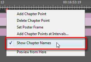 Чтобы имя метки можно было увидеть прямо на таймлинии, нужно щелкнуть правой кнопкой мыши и выбрать из выпадающего меню пункт Show Chapter Names.