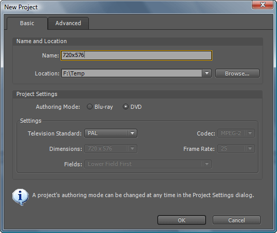 Как только Encore будет готов к работе, тут же появится диалоговое окно, где вам предстоит выбрать тип создаваемого диска, настроить параметры звука, определить максимальный битрейт видео (в случае, если его необходимо перекодировать).