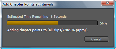 Проще всего создать такие главы, воспользовавшись командой Add Chapter Points at Intervals... Суть операции понятна из названия расстановка меток через определенный интервал.