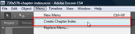 Следующая достойная внимания новинка — это функция автоматического создания многоуровневых меню, вызываемая командой Menu -> Create Chapter Index. Эта команда активна лишь в том случае, если на таймлинии расположен какой-либо материал, а также, если в копилке проекта уже находится меню, в котором присутствует ссылка на первую главу фильма.