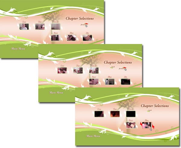 По окончанию операции обнаруживается, что программа создала необходимое количество подменю, самостоятельно расставив нужные ссылки и поместив миниатюры кадров в рамки кнопок. Всё, что остаётся пользователю, — это лишь изменить текст надписей в каждом меню.