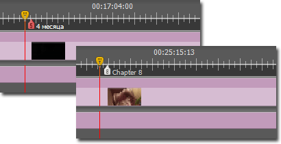 Теперь названия глав появились прямо на таймлинии, справа от меток. Отныне мы всегда сможем отличить метку, установленную вручную (которая в дальнейшем будет играть роль начала главы на диске), от "интервальных" меток, установленных автоматически и носящих стандартные названия Chapter #.