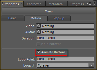 Всё-таки чего-то не хватает. Наверное, движения. Конечно, меню просто необходимо анимировать, так, чтобы видеокадры в кнопках стали "живыми", представляя собой короткие видеоролики. Это делается просто во вкладке Properties найдите пункт Animate Buttons и отметьте его флажком. В строке, находящейся выше, напечатайте нужную продолжительность анимации (в нашем случае продолжительность составляет 30 секунд). Если вы хотите, чтобы анимация в меню проигрывалась постоянно, то остальные параметры затрагивать не следует.