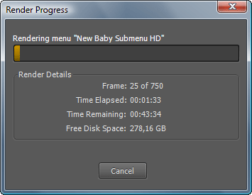 Для просчёта этого 30-секундного ролика (анимированное меню — это, собственно, и есть обыкновенный видеоролик заданной продолжительности) требуется немало времени. Объясняется это просто: представьте себе, сколько работы требуется выполнить программе, чтобы взять из каждой сцены по 30 секунд видео, изменить размер этих роликов, вставить их в кнопки меню, наложить поверх всего нужный текст и графику, и, наконец, сведя все объекты воедино, ещё и закодировать в MPEG-2.