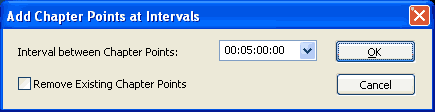 Все, что нам предлагают разработчики продукта (к сожалению, выбор не густ) — это назначение временного интервала, через который будут установлены главы. Выберите интервал, а также обратите внимание на строку Remove Existing Chapter Points — если вы отметите флажком данный пункт, то все ранее расставленные главы будут удалены, в противном случае новые главы добавятся к уже существующим. Не стоит забывать о том, что начало каждого клипа — это всегда первая глава. Теперь попробуйте расставить главы вручную. Используя монитор и клавиши управления на нем, выберите нужное место в фильме и нажмите кнопку добавления главы.