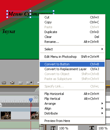 и сделайте все ваши надписи кнопками. Для этого щелкните правой кнопкой мыши по тексту и в появившемся окне выберите пункт Convert to button или нажмите CTRL+B.