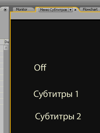 Перейдите к настройке меню. Создайте, как и в меню звука, несколько ссылок. Например, субтитры Off, Субтитры 1 и Субтитры 2. Далее создайте кнопки, а затем присвойте им ссылки.