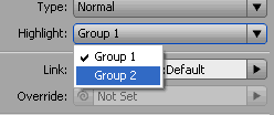 Выберите Automatic, затем щелкните по любой кнопке и обратите внимание на окно свойств, где вы ставили ссылки. Там теперь активна строка Highlight, в которой вы можете выбрать группу (либо Group1, что соответствует Highlight Group 1, либо Group2 Highlight Group 2).