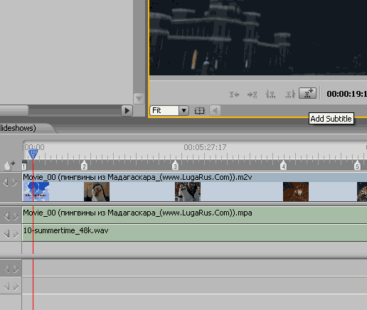Для того, чтобы создать субтитры, выберите нужный фрагмент на таймлинии и нажмите кнопку Add Subtitle.