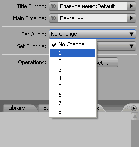 В появившемся окне выберите в строке Audio ту дорожку, которая будет установлена при активации этой кнопки, в примере это первая дорожка . Выше установите второе действие, которое будет происходить например, возврат в Главное меню.