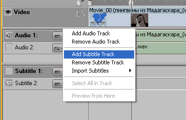 На второй линейке субтитров создайте вторые субтитры, например, на английском языке.