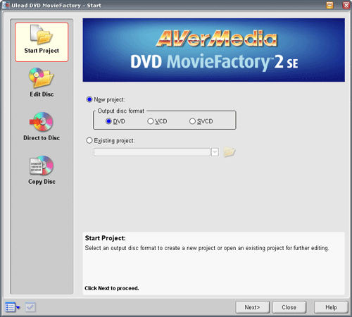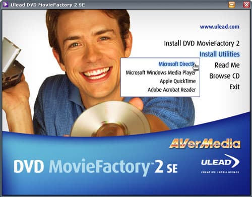 Программы, поставляемые вместе с устройством, широко известны. Это небезызвестные продукты компании Ulead DVD Movie Factory и VideoStudio. Номера версий данных пакетов ниже, чем представленные сегодня на сайте компании. Но обратите внимание, каждая программа имеет дополнительное отличие: логотип AVerMedia. Это означает только одно: программное обеспечение, поставляемое вместе с устройством, адаптировано для работы именно с ним, что не может не сказаться положительно при использовании аппарата. Проверим.