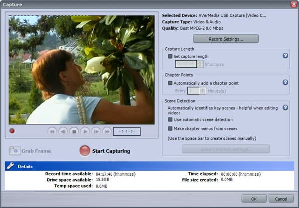 Следующий шаг — захват видео. Здесь включится модуль захвата, имеющий минимум настроек. Все, что потребуется от пользователя — это выбрать нужное устройство в качестве источника. Если никаких других WDM-устройств в системе не установлено — то и выбирать не придется.
