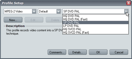 Нажатие кнопки Profile откроет окно, в котором производится выбор формата создаваемого видеофайла. Среди доступных форматов MPEG-1, MPEG-2 и AVI. В последнем случае необходимо будет выбрать и кодек сжатия, иначе по умолчанию станет создаваться некомпрессированное видео.