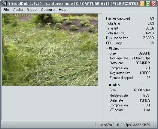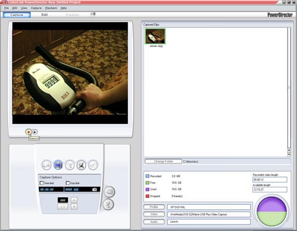 Перед захватом следует убедиться в том, что диск, на который будет производиться захват, тщательно дефрагментирован особенно это условие распространяется на маломощные ноутбуки и диски, не могущие похвастаться высокими скоростями. По нажатию кнопки Record начнется захват.