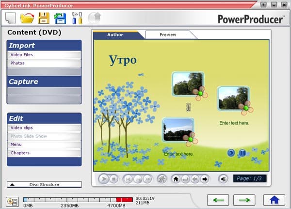 Данная программа не обладает возможностями авторинга при попытке создания DVD-видео диска нажатие на кнопку Continue Authoring приводит к сворачиванию программы и автоматическому запуску ее логического продолжения - Power Producer, где инструмент авторинга присутствует.