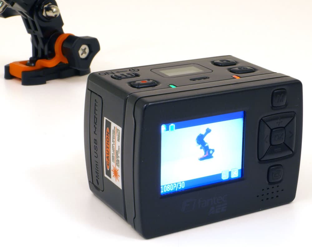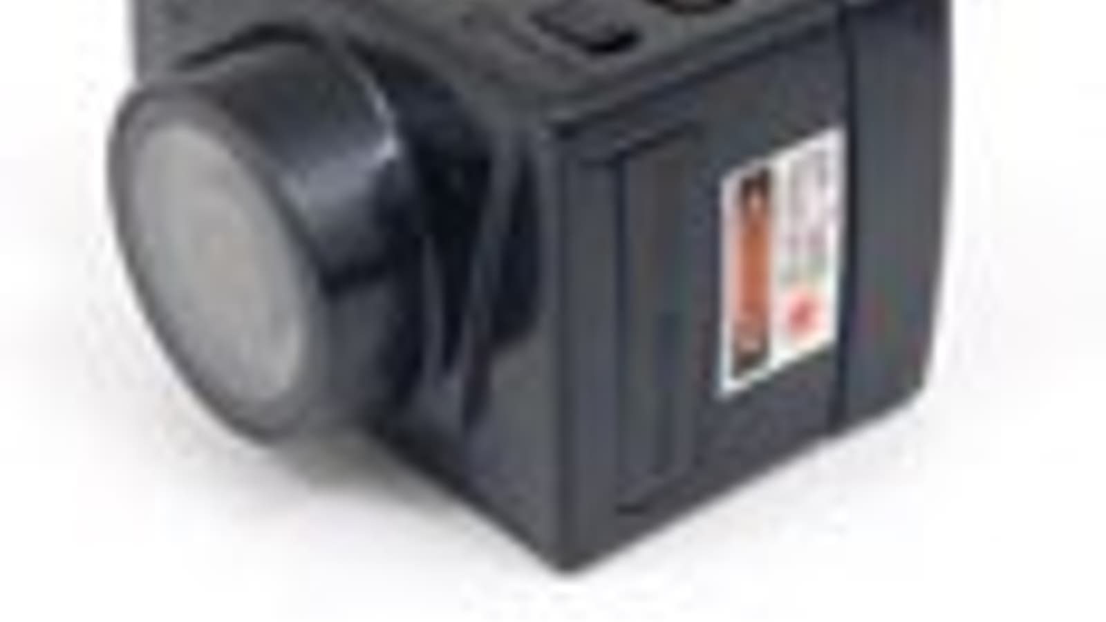 Выступающий на один сантиметр объектив камеры прикрыт защитным стеклом, устойчивым к повреждениям. Над объективом расположены индикатор режима работы и встроенный лазерный указатель направления съемки.