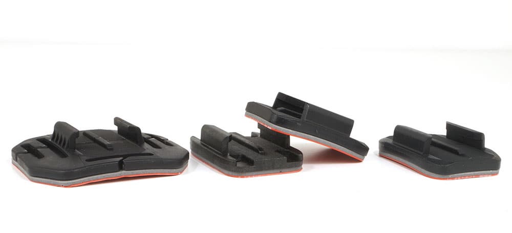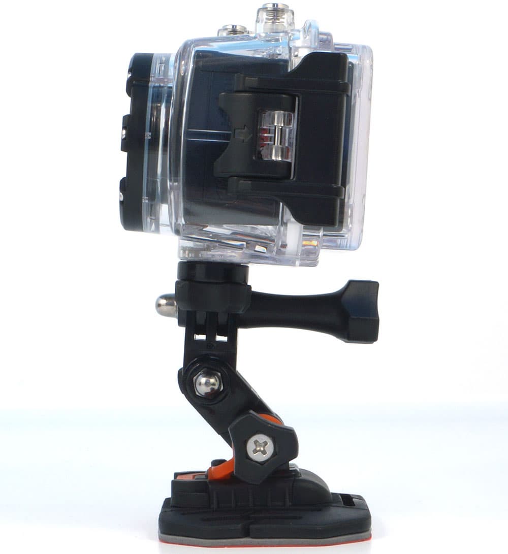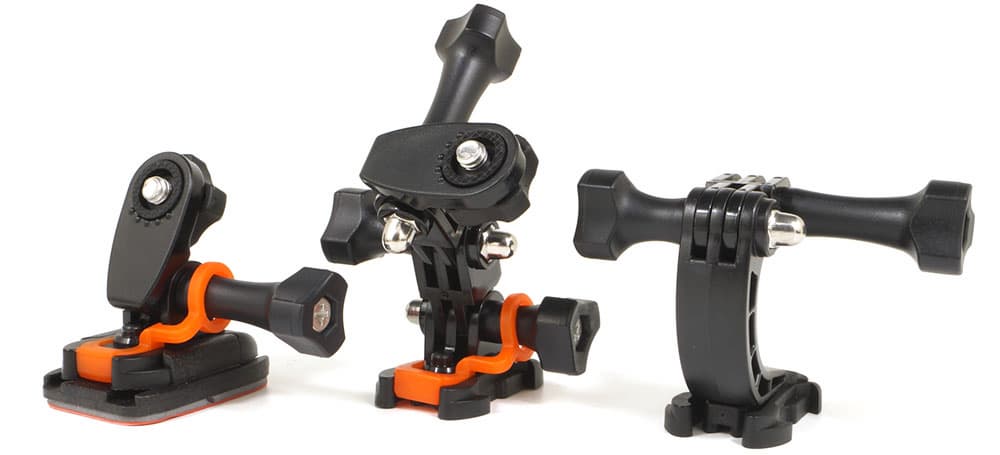 Наконец, дополнительно расскажем о креплениях, имеющихся в комплекте. Несколько площадок с клейким основанием предназначены для их фиксации на плоских или изогнутых поверхностях. К этим площадкам надежно крепятся разборные кронштейны с несколькими степенями свободы. Кронштейны имеют стандартное резьбовое крепление, к которому привинчивается камера как в боксе, так и без него. Данные кронштейны снабжены силиконовыми фиксаторами (оранжевого цвета), которые не позволят зубчикам кронштейна выскользнуть из захватов площадки при сильном ударе или тряске.