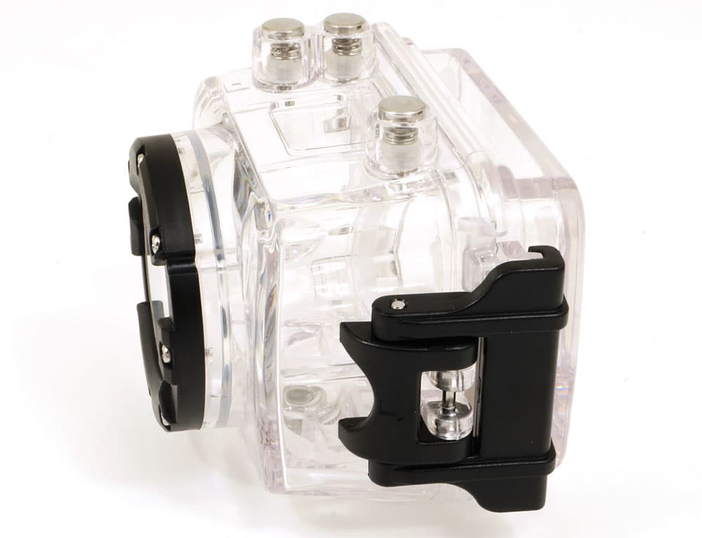 Аквабокс так же, как и сама видеокамера, оснащен стандартным резьбовым отверстием, что не может не радовать. Максимальная глубина погружения камеры в воду в данном защитном боксе составляет 60 метров; эта информация нами, конечно же, не проверялась — негде. Да и некому.