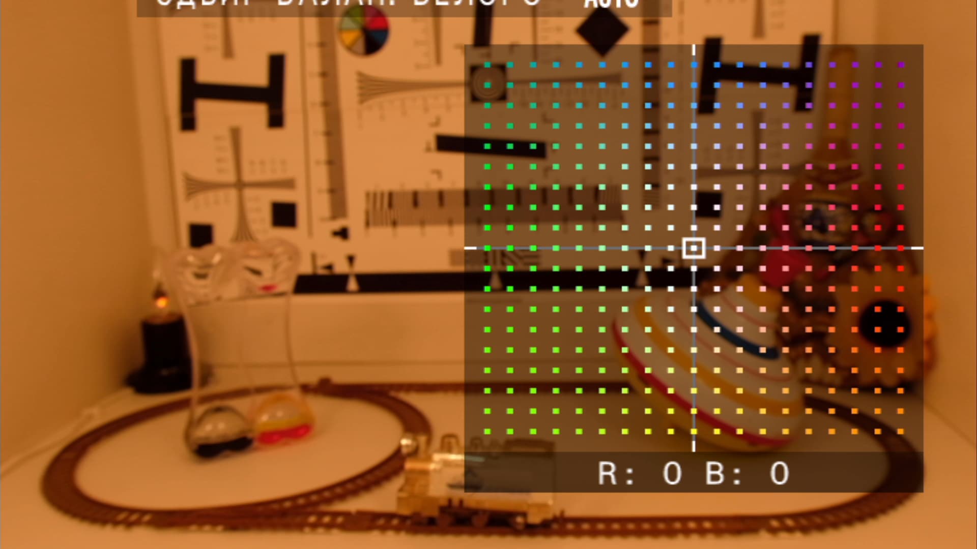 Настройка баланса белого в камере осуществляется как выбором имеющихся предустановок, так и вручную, установкой маркера на цветовой таблице либо перебором значений температуры в Кельвинах. Камера предусматривает создание и хранение нескольких предустановок с пользовательскими параметрами.