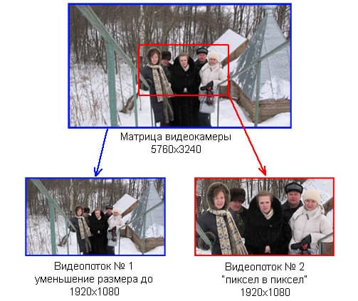 В какой-то степени отсутствие механического зума сможет компенсировать электронный, за счет наличия огромного количества пикселов на матрице. Для формирования видеокадра станет использоваться не вся площадь матрицы, а лишь какая-то её часть (кстати, остальная площадь матрицы понадобится для улучшенной стабилизации видеокадра).