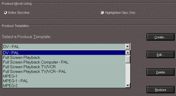 Подготовленный таким образом проект можно сохранить на любой стадии его производства без окончательного пересчета в готовый видеоролик, что позволяет в любой момент вносить изменения. В проекте запоминаются только пути исходных видеофрагментов, виды переходов, титров, анимации и т. д., то есть только произведенные пользователем изменения, поэтому он занимает очень незначительный объем на жестком диске. Без пересчета можно также просмотреть результат применения перехода, титров и других эффектов, но не готовый фильм целиком. После завершения работы над проектом производится его пересчет (Produce) в готовый фильм в одном из предлагаемых программой или построенных пользователем форматов (их насчитывается более десятка).