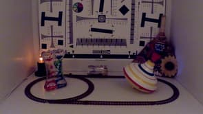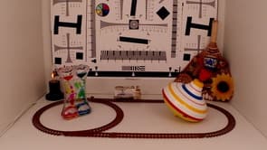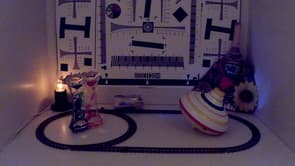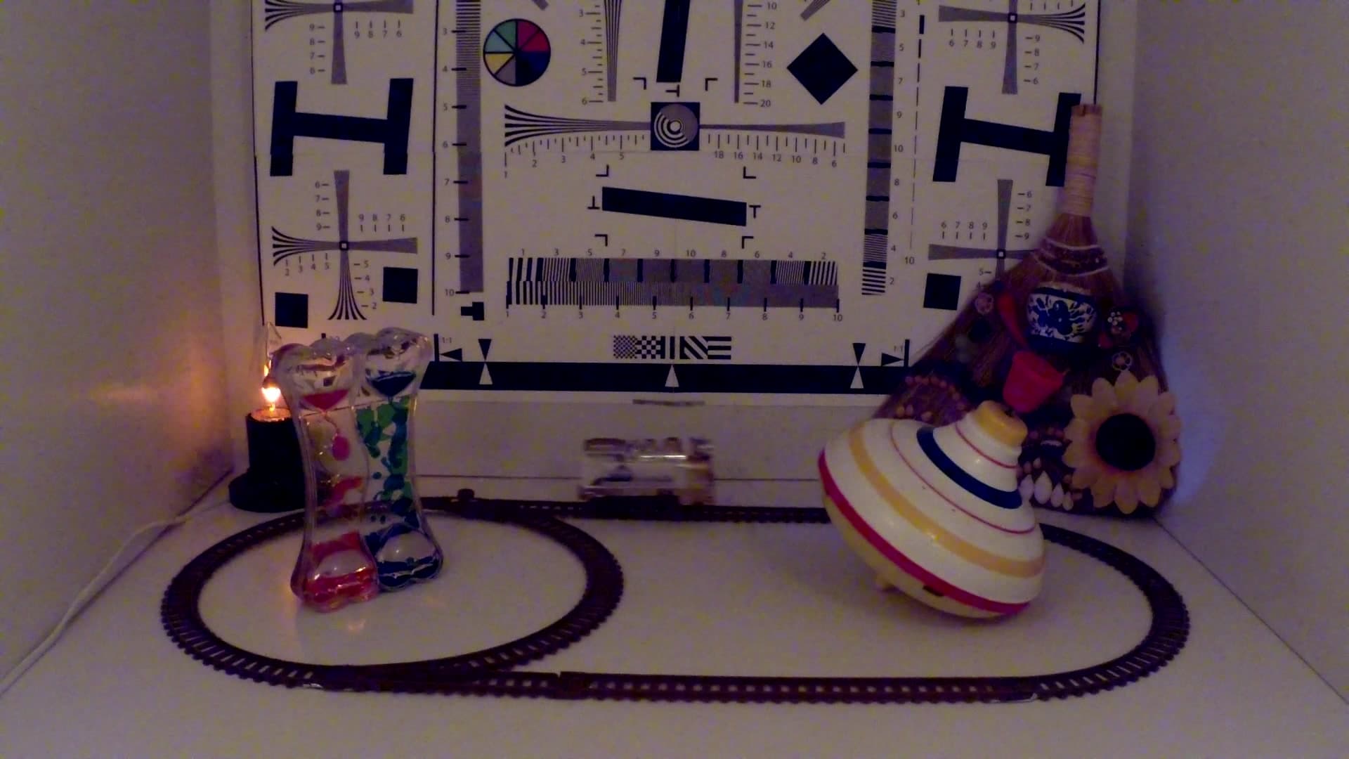 Поскольку рассматриваемый аппарат имеет многомегапиксельную матрицу, следует ожидать наличие заметного роллинг-шаттера (подробнее о нем можно прочитать в заметке Rolling Shutter (роллинг шаттер) в видеосъемке — описание дефекта, примеры, пояснения). Проверим это предположение, поместив камеру на игрушечную машинку. Вот уж здесь тряска вполне подходящая для такого дела.