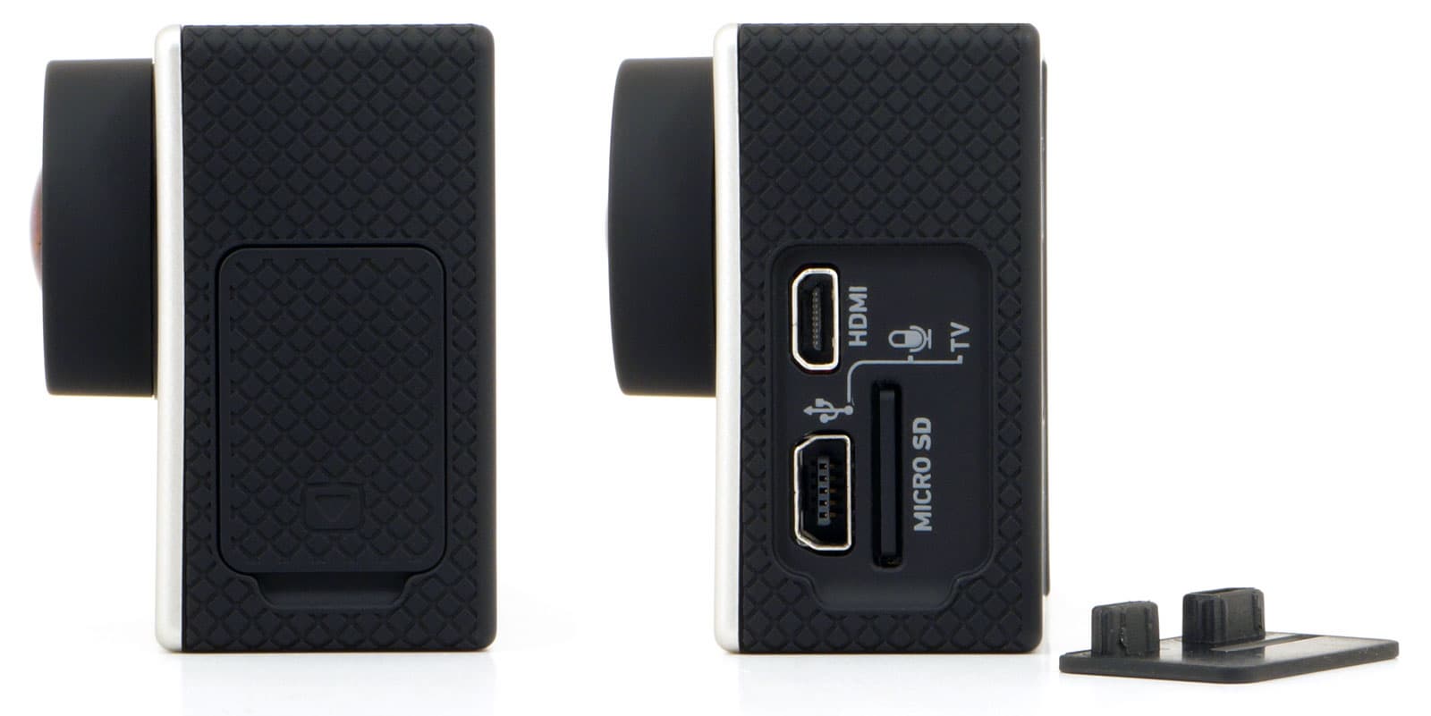 В отличие от прежней версии GoPro Hero 3, рассматриваемая модель оснащена USB-портом, совмещенным с аудиовходом и аналоговым видеовыходом. Об этом можно судить по нанесенным на корпус аппарата пиктограммам. Разумеется, для получения этих функций требуется специальный фирменный кабель.