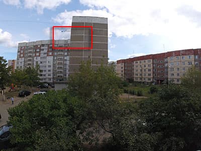 Тестируя обычные камеры с нормальным углом обзора, мы часто измеряем угол наклона вертикалей, делая это с помощью установки с вращающимся цилиндром. Но с таким объективом, который установлен в рассматриваемой камере, это делать бессмысленно — угол обзора камеры слишком широк. По данной же причине безрезультатным оказывается и наблюдение за наклоном вертикалей в «живом» видео — любой наклон «съедается» слишком широким углом обзора, поскольку объекты словно бы перемещаются по поверхности сферы. Поэтому обойдёмся реальными примерами съемки, не синтетическими. Попытаемся отыскать пресловутое «желе», второй признак роллинг-шаттера.