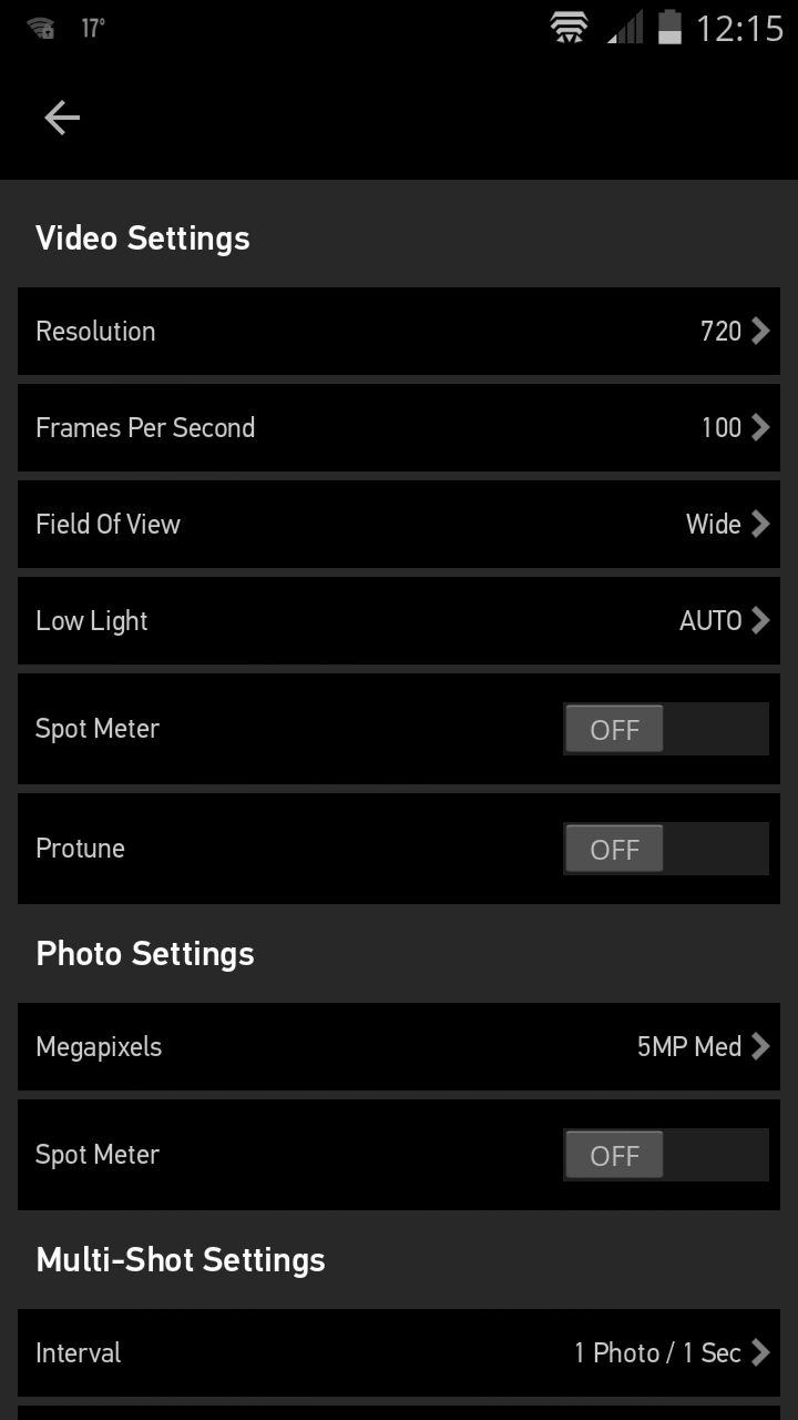 Вот за что можно уважать фирменное мобильное приложение GoPro App, так это за богатый набор настроек, позволяющий задействовать множество опций, вплоть до регулировки звуковых сигналов камеры.