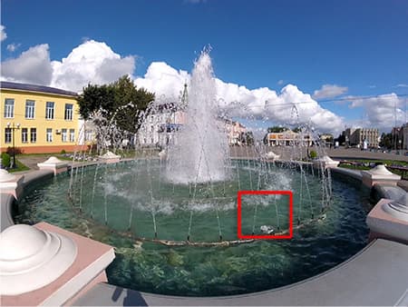 Можно отметить хорошо различимые регистрационные номера автомобилей, которые находятся на значительном удалении от камеры. Да и другие детали в видео зафиксированы безупречно. Нет, все-таки съемка фонтана — это слишком экстремальный тест даже для хороших камер.