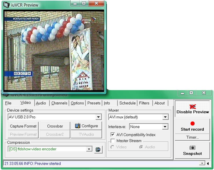 То программное обеспечение, что предлагается нам в комплекте с «Grand AV USB 2.0 Pro», по каким-либо причинам может не устроить конечного пользователя, и поэтому мы проведем еще один тест — мы попробуем использовать стороннее программное обеспечение. В этом качестве мы попытаемся использовать популярную утилиту «iuVCR» и не менее популярный среди обычных пользователей «Pinnacle Studio» 10-й версии. Начнем с «iuVCR»: