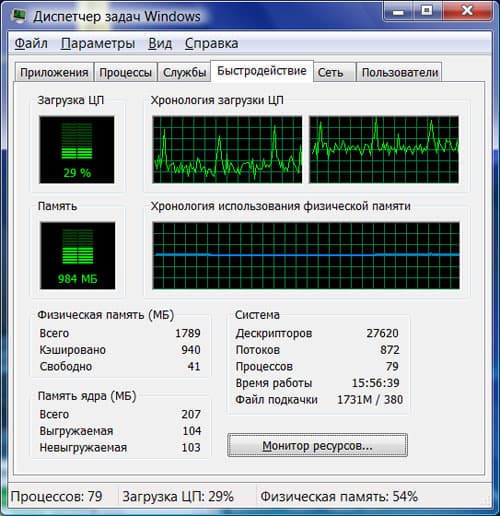 На этом скриншоте показан график загруженности процессора в момент захвата видеопотока. Видно, что два ядра центрального процессора загружены неравномерно, и средняя загрузка ядер составляет около 30%. Запас более чем достаточен!